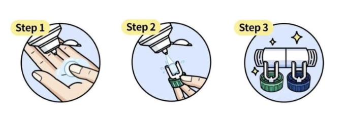 OK镜护理也一样,要想保持镜片干净,首先要做好每日护理。经过一晚的配戴,早晨取下的OK镜表面会附着一层沉淀物,这些沉淀物大部分都是轻轻地吸附在镜片表面,此时马上清洗会比较容易,这里提到的“清洗”就是要做的每日护理的过程:
