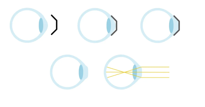 OK镜通过重塑角膜形态,在视网膜周边形成“近视离焦”信号,从根源抑制眼轴过快增长。