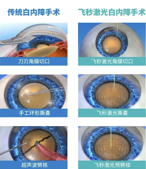 传统白内障手术过程中,手术切口由手术者的经验、环境、手术器械质量等因素决定,切割的精确度或多或少可能存在误差。而利用飞秒激光制作切口时,整个过程完全由飞秒激光来完成。