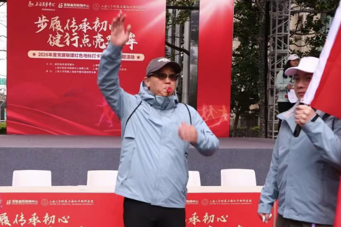 该系列活动贯穿2026年度全年,每季度举办一场,共设四场,旨在通过党建联建与健康公益深度融合,将红色教育与眼健康服务送入社区、送到群众身边。上海商务中心股份有限公司党支部书记金超、我院院长郭海科、党支部书记柏承亮、总经理胡剑徽及来自各主办单位的党员代表及周边社区居民共50余人参与活动,用脚步追寻红色足迹,以行动赓续精神血脉。