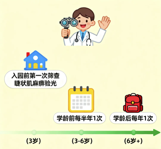 筛查频率也要注意:学龄前每半年 1 次,学龄后每年1-2次。通过定期筛查,家长能及时了解孩子远视储备变化,一旦出现异常,就能尽早采取措施。
