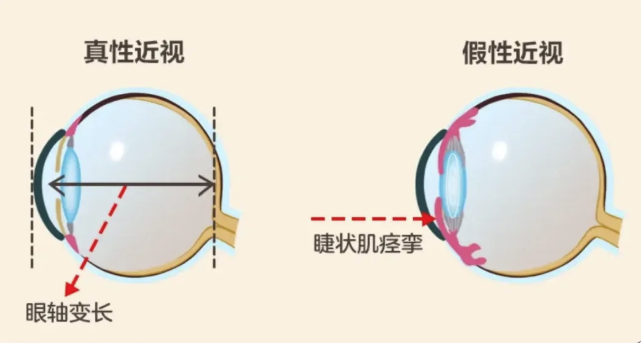近视分为真性近视和假性近视,假性近视是睫状肌痉挛引起的暂时性视力模糊,通过休息或治疗可以恢复。而真性近视是由于眼轴变长导致的,就像身高长了无法变矮一样,眼轴变长了也无法缩短。