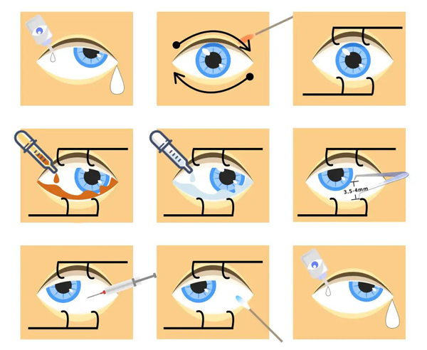 抗VEGF治疗过程其实就是往玻璃体腔注药,也就是眼内注药。很多人一听说要往眼睛里打针,就会觉得特别害怕。其实,抗 VEGF 治疗的过程并没有大家想象的那么可怕。
