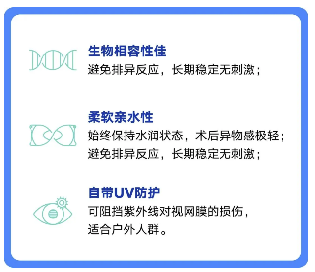 ICL晶体采用Collamer胶原聚合物,其成分与人体角膜、晶状体高度同源,具有: