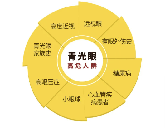 “视神经一张照,青光眼早知道”——青光眼的检查非常简单,只要给我们的眼睛拍一张眼底照,90%以上的青光眼都可以被诊断;眼压检查也是非接触和无创的,1分钟的测量,就可以让我们对眼内压力尽在掌握。建议以下高危人群,应定期进行眼科检查: