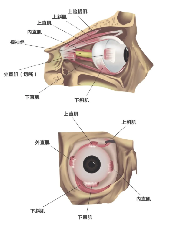我们的眼球之所以能上下左右灵活转动,主要就是靠附着在眼球表面的肌肉——眼外肌来实现的。