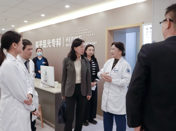会后,在医院胡剑徽总经理、翟爱琴副院长、欧阳朝祜主任、李青副主任的陪同下,陈瑛总裁一行实地走访了屈光专科门诊、检查室,全面了解医院在ICL手术流程优化、患者服务体验与医疗质量管理方面的实践成果。