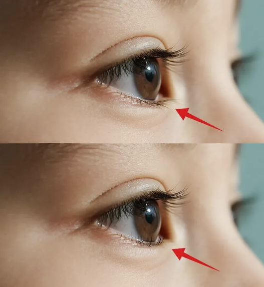 上图为正常睫毛,下图为倒睫
