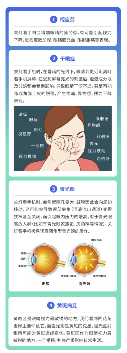 那么如果一定要在光线暗的地方或关灯情况下看手机,如何做能减少对眼睛的伤害?