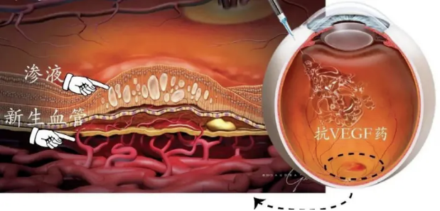 靶向给药,药物直接到达眼底病变处,避免全身用药的肝肾代谢负担,局部药物浓度更高,起效快速直接。